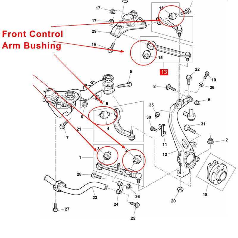 Viso priekinės pakabos valdymo svirties įvorių komplekto pakeitimas padeda atkurti pakabos amortizacines savybes,